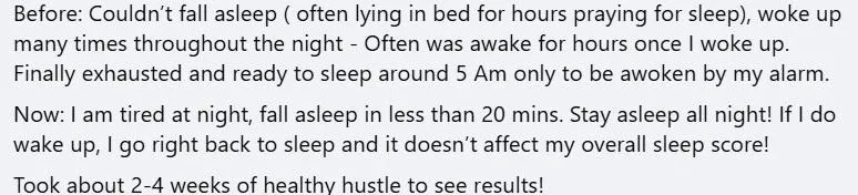One client Marie took action on day 1, followed the entire protocol, and saw improvements within 3 days! She fell asleep from 11-7am after being an insomniac for over a year.